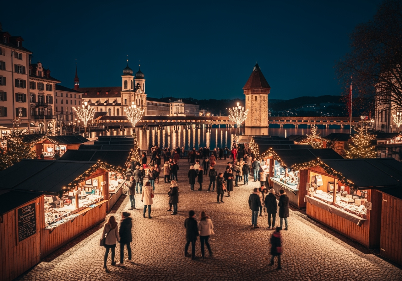 Romantica e accogliente, Lucerna ospita il suo mercatino nella Franziskanerplatz, dove i profumi di vin brulé e biscotti natalizi accompagnano l’artigianato locale. Le luci che si riflettono sul Lago dei Quattro Cantoni e sui ponti storici creano un’atmosfera da fiaba, ideale per una fuga invernale di coppia o in famiglia.