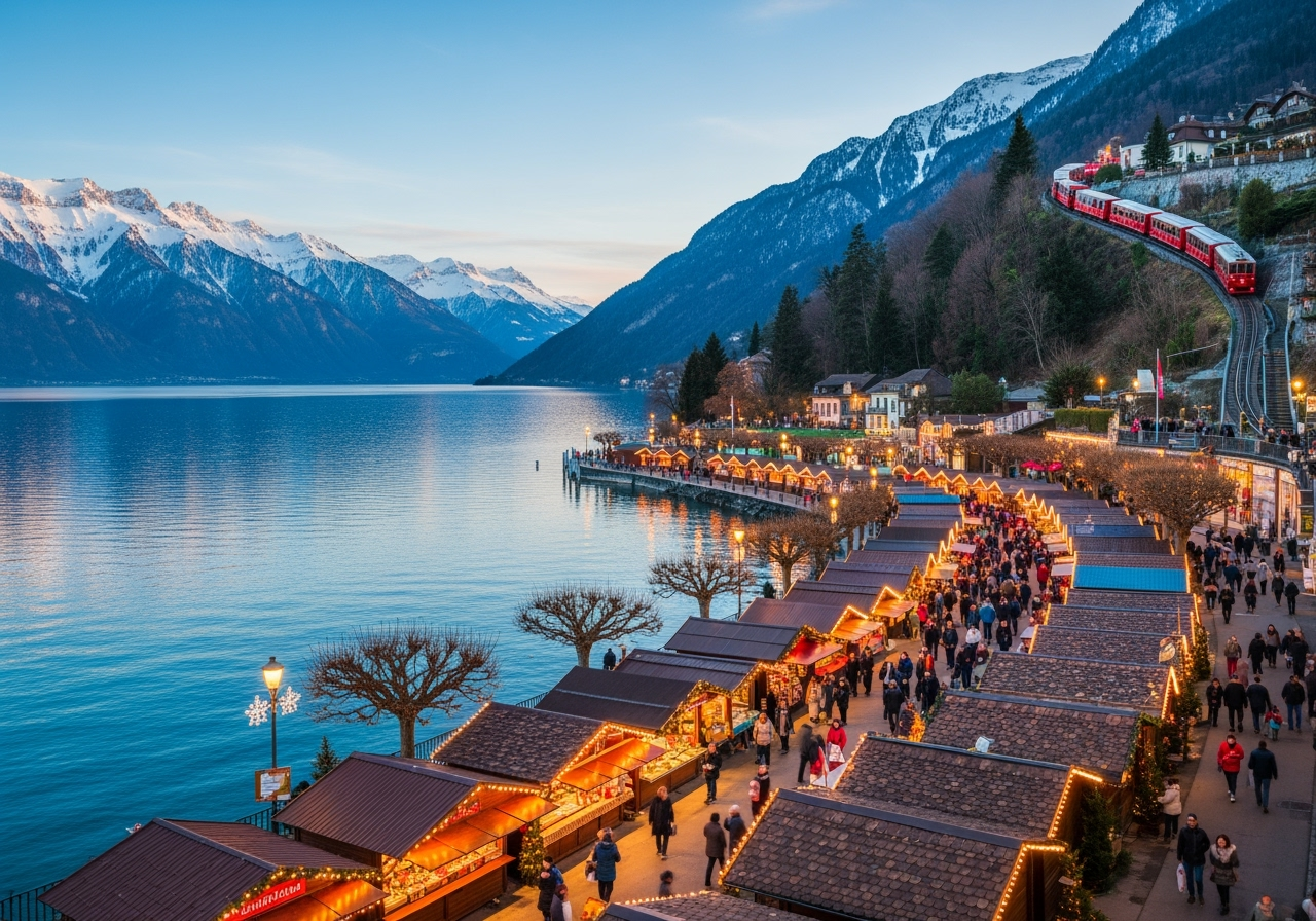 Dal 20 novembre al 24 dicembre 2025, sulla riva del Lago di Ginevra, oltre 150 bancarelle e dolci tipici attendono i visitatori. Evento unico: ogni sera alle 17, 18 e 19, Babbo Natale vola sulla sua slitta sopra la piazza centrale, spettacolo imperdibile soprattutto per i bambini. Consigliato salire anche sulla ruota panoramica per una vista mozzafiato sul lago e sulle montagne.